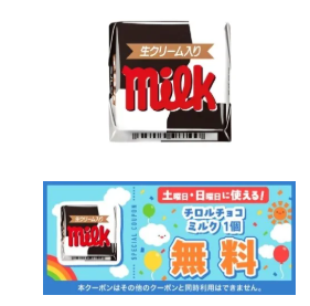 セブン‐イレブンアプリにてチロルチョコ ミルク無料クーポン配布。