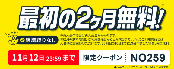 入会フォームでクーポンコード【NO259】を入力してください♪