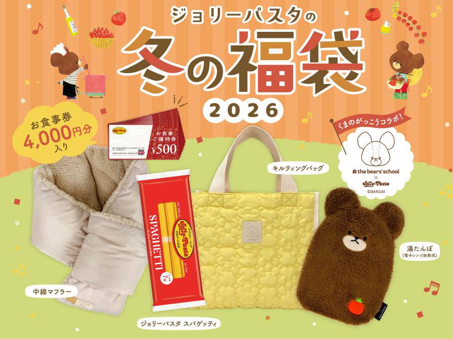 ジョリーパスタ公式アプリにてジョリーパスタ くまのがっこう福袋が抽選受付スタートです!