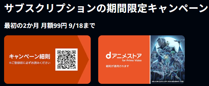 Amazon プライムビデオで2か月99円キャンペーン開催中です♪