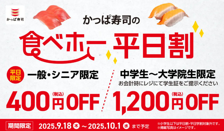 9月18日~10月1日までの平日限定で、かっぱ寿司にて