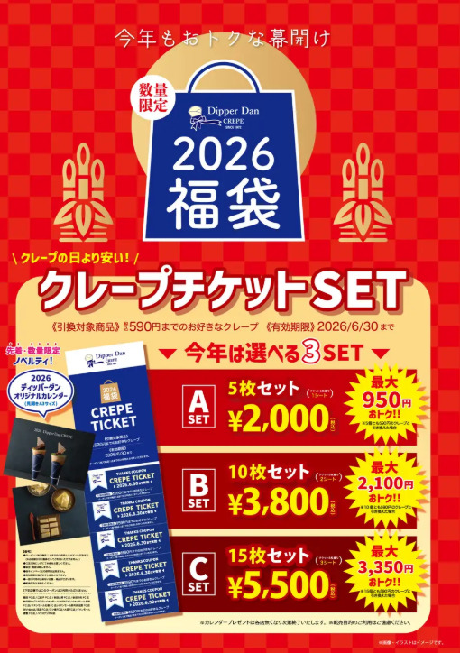 引換券は通常価格590円(税込み)までのクレープが対象。有効期限は2026年6月末日まで
