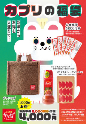 12月26日~カプリチョーザ店頭にて福袋を発売。