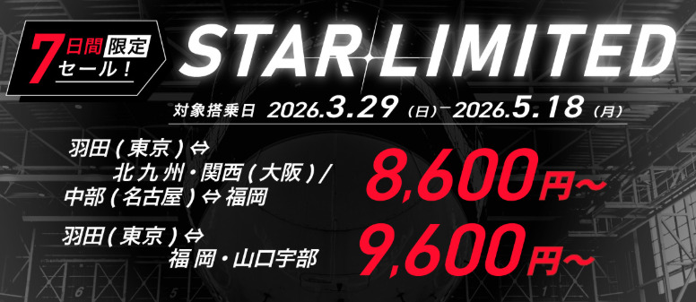 2026年2月27日(金)~3月5日(木)までスターフライヤーでセール開催。
