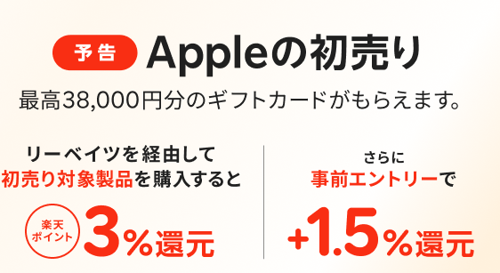 1月2日 ~ Appleの初売りを開催。楽天リーベイツを経由して購入すると楽天ポイント3%還元!