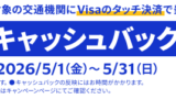 Visa割開催中。対象の鉄道事業者をVisaのタッチ決済にて利用すると、乗車料金の30%をキャッシュバック。