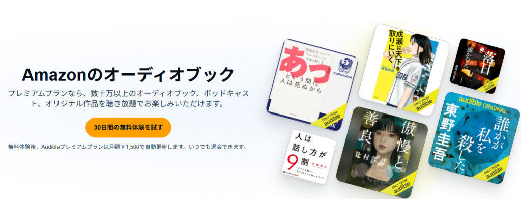 Amazonオーディブルが30日間無料体験のキャンペーンを開催中です。