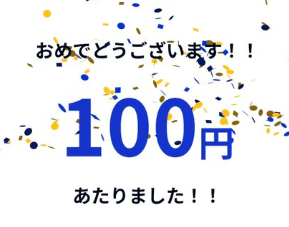 メールが届いたのでルーレットを回したところ、100円が当たりました!