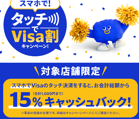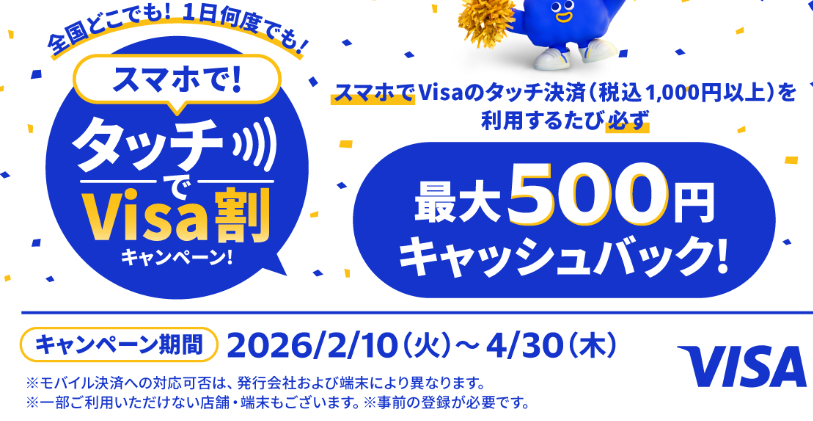Visa割とは、Visaが2026年4月30日まで全国で実施中のキャッシュバック企画です。